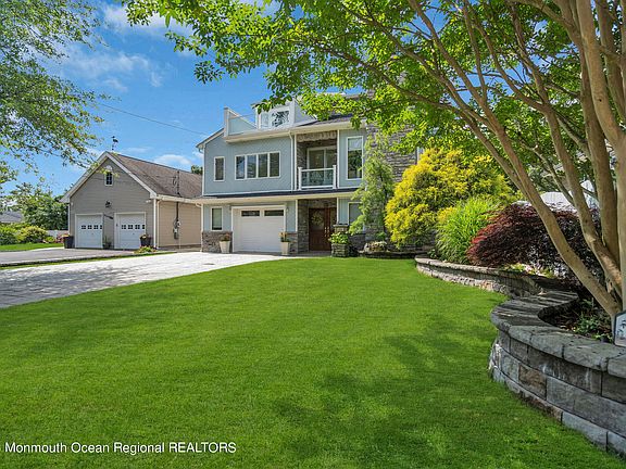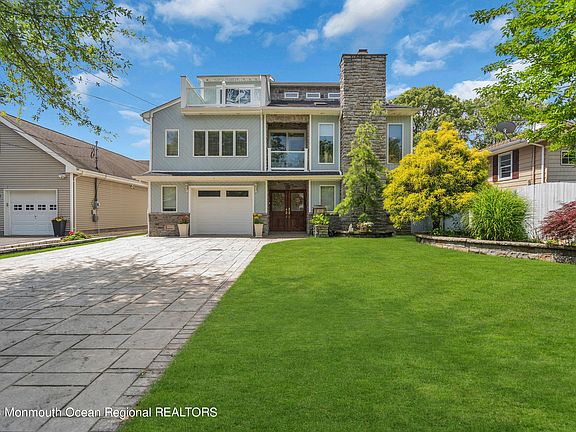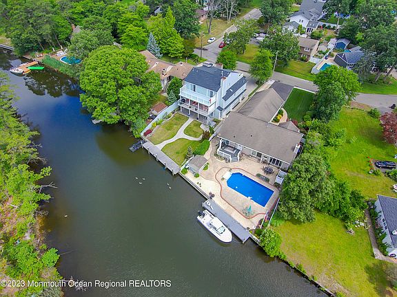 Beautiful and bright waterfront home totally remodeled in 2017 in Midstreams section of Brick. New 50 ft vinyl bulkhead with access to ocean and bay. Elevated 3 stories with elevator, 20 ft vaulted ceilings, lots of skylights and open floor plan. Heated flooring through out. Large gourmet kitchen with granite counters and large island. Separate dining area. Family room off kitchen with fireplace. Multiple decks with serene water views. Master w/en suite. Lots of storage on first level. Baseboard hot water heating system, new 2 zone AC & condensers. New plumbing and electric. Garage attached and access to first floor and elevator. Stamped concrete driveway, beautiful landscaped lot, quiet area of midstreams, easy access to beaches & shopping.