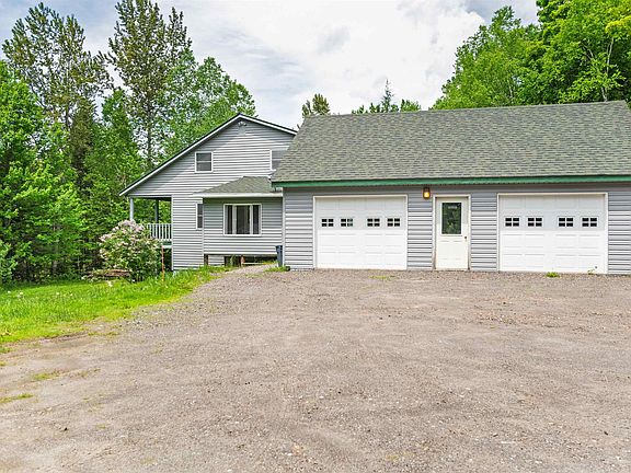 Welcome home to this newly updated three-bedroom, two-bath home set on 17.6 peaceful acres along a quiet, paved country road. Thoughtfully refreshed throughout, this home offers a warm blend of comfort, function, and style. Step inside to an easy-flow main level featuring a bright kitchen with updated stainless steel appliances, a new sink, and a tasteful backsplash. The spacious dining area opens to a large, inviting living room accented by a cozy pellet stove and hearth—perfect for gathering on chilly evenings. A convenient half bath with laundry completes the main floor. New flooring and lighting throughout create a fresh, welcoming feel in every room. Up the beautiful oak staircase, you’ll find a serene primary bedroom with an attached nursery or office, a brand-new full bath, and two generous guest bedrooms. The full walkout basement provides abundant storage and great potential for future finished space. Enjoy peaceful views from the covered deck just off the living room, or come and go with ease through the direct-entry mudroom. The property also includes a two-car detached garage with storage above, a drilled well, durable vinyl siding, and a metal roof. With selective clearing, you could open up lovely mountain views. Outdoor enthusiasts will appreciate the snowmobile trail only 30 feet from the property and ATV access just down the road. The home also comes with a chicken coop and shed. This beautifully updated home is ready for you—come make it yours today!