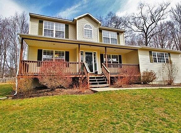 Beautiful and Spacious Colonial with Privacy Abound! Rare picturesque 1.21 acre lot features 3 bedrooms/2.5 bathrooms! HUGE Great room with Palladian Windows and Vaulted Ceilings, Large Eat In Kitchen w/limestone counters, stainless appliances, and pantry, Formal Dining Room, additional room on first floor can be office, playroom or additional 4th bedroom, Upper Level offers 3 bedrooms, master has full bath and walk in closet. Finished lower level offers an additional 540 sq feet for rec room/exercise area/additional family room, 2 car att garage, Hardwood, Central Air, Expansive Deck, Covered Front Porch, Your Home Sweet Home Awaits!