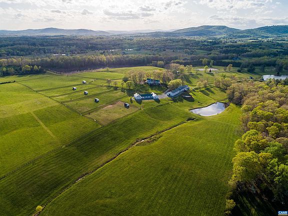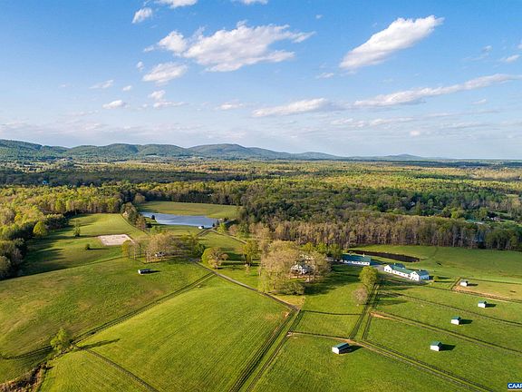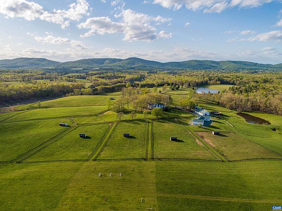 Comprised of 216 acres in the heart of Keswick Estate Country, Arabelle Farm offers a rare opportunity: A turn-key equestrian property & farm with recently refurbished farm improvements and a lovely renovation of the impressive, c. 1910 5 bed/5 full/2 half bath residence. The home looks out over lovely pastoral views in all directions and is shaded by massive oak trees. Additional improvements include a 23 stall, center aisle barn with two apartments above (5 bedrooms), 6 bay car or party barn, a 3 bay machinery garage, as well as a 2-bay workshop with renovated, 2 bedroom apartment above, 10 paddocks with run-ins, and 2 beautiful ponds. The 125’x250’ riding arena has new all weather footing and there is a 5-acre jumping field. Fiber internet by Firefly.