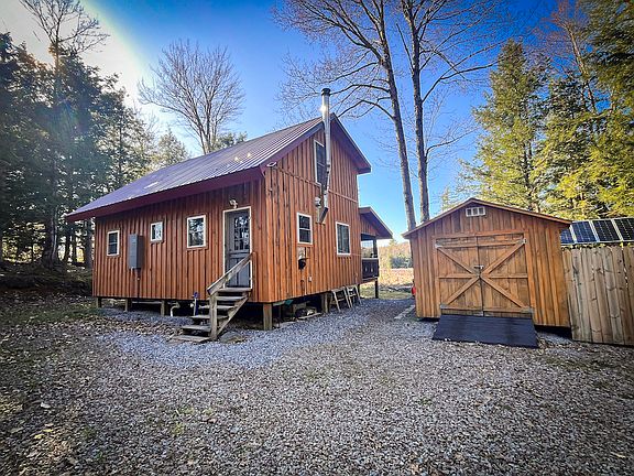 Experience the serenity of secluded living in this charming off-grid cabin nestled on nearly 18 acres of pristine land. Accessed via a well-maintained, year-round road, this Alaskan-style lodge offers a perfect blend of rustic charm and modern comfort. Step inside the 20X28 cabin to discover a cozy, yet spacious interior designed for relaxation and enjoyment. The open kitchen features hickory cabinets and custom butcher block countertops, creating a warm and inviting atmosphere for cooking and entertaining. Dual heat sources from a wood-burning stove for primary heat and propane heater to take off the chill ensure comfort year-round, while an on-demand propane water heater provides hot showers at your convenience. With one bedroom, one bathroom, and an upstairs loft area featuring custom-built bunk beds, there's plenty of room for everyone to rest and recharge. Outside, the property boasts a mix of hardwood and softwood forest, a tranquil pond, and a babbling creek. The screened-in back porch offers a serene spot to enjoy the sights and sounds of nature, overlooking the picturesque beaver pond along the entire backside of the lodge. For power, the cabin is equipped with a gas-powered generator with the additional convenience of solar panels, an inverter, and a battery bank for additional power and to keep gas consumption down, with the ability to enhance output with a new series of batteries should the new owners choose. Whether you're seeking a weekend getaway or a year-round retreat, this off-grid cabin provides all the comforts of home in a truly secluded setting. Schedule your showing today and experience the tranquility of secluded living firsthand. Located minutes to Williamstown and Camden, conveniences and amenities are within close reach. Area recreation abounds in the form of world-renowned fishing, abundant miles-long snow and ATV trails, hunting, camping and numerous other activities. Close to the I81 corridor and accessed exclusively on paved roads year-round availability is paramount. To learn more about this desirable destination or to schedule a private showing today and experience the tranquility of secluded living contact us today. Please do not enter property without a previous appointment. Property is under 24-hour surveillance. All showings must be conducted by a licensed real estate agent and proof of funds or proof of pre-qualification are required to schedule a showing.