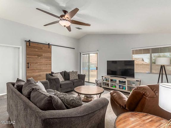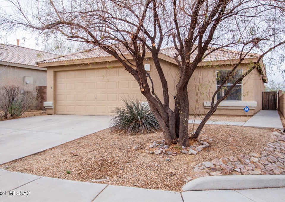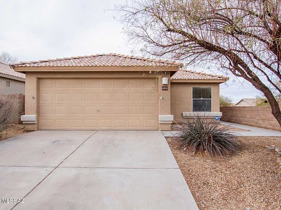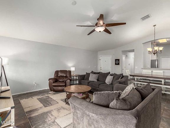 Beautifully updated home with soaring ceilings, handsome tile floors throughout (NO carpet), trending neutral palette, upgraded lighting/ceiling fans, and a corner lot. This great room floor plan features 2 bedrooms with a spacious den that could be converted to a third bedroom. SS kitchen appliances, pantry, and breakfast bar. Lovely home for entertaining. Interior laundry room with storage cabinets. Generous size bedrooms, ample closets, & two bathrooms. Covered patio in the back with low maintenance yard and room to add your touch. Award winning Vail school district! Take a tour today.