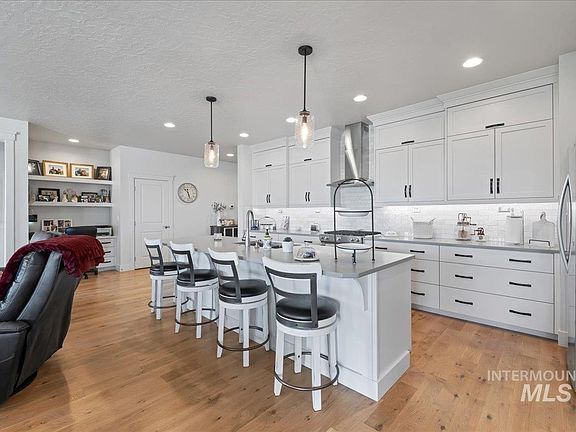 Nestled in one of Kuna's premier subdivisions, this stunning single levelhome offers unparalleled luxury and design, backing up to a vibrant outdoor sports park. Enjoy easy access to pickleball courts, soccer fields, walking trails along the waterways, and two community pools right out your front door. The open great room seamlessly connects to a formal dining room area, perfect for entertaining. Retreat to the spacious master suite, featuring a luxurious walk in shower and separate soaking tub. The thoughtfully designed split bedroom plan ensures privacy, while the hardwood floors and quartz countertops elevates the aesthetic throughout. A dream mudroom adds convenience, and the three car garage provides ample storage. With custom blinds throughout , this home exudes a fresh , brand new feel, making it the perfect oasis for comfortable living and outdoor enjoyment. The covered patio and private back yardand the the peacefull enjoyment.
