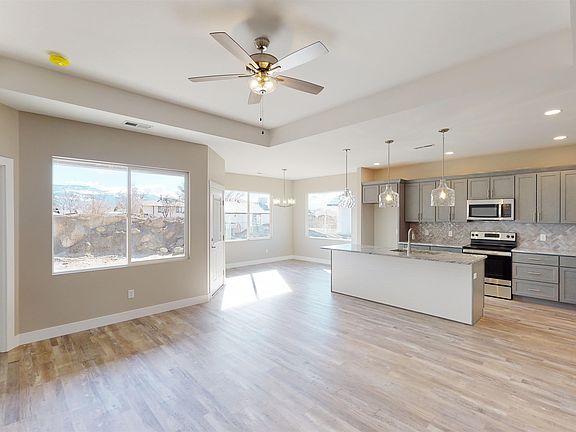 VIEWS OF THE MESA, BIG YARD, NEW CONSTRUCTION AND AFFORDABLE!! Brand new home where "upgrades" are standard! Take the chill off with your gas fireplace while enjoying family & friends in this spacious living/dining/kitchen. All stainless appliances & single bowl sink. Large windows, lots of LED cans, under cab & toe kick lights. Durable LVT flooring with carpet in bedrooms. Covered, private patio with amazing views of the Mesa and access from master bedroom. For additional fee builder will complete landscaping and fencing as an upgrade, so those costs can be rolled into your loan!