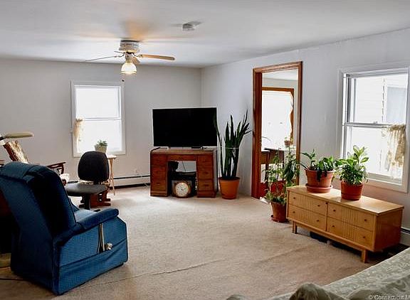Cozy 2 bedroom, 1 bath, ranch style home on 6 private acres of land. This nicely maintained home also offers a 3-seasons room that is connected to the living room. New oil tank and recently updated 200 amp. circuit breaker panel. There are 4 outbuildings on the property along with a separate water source for those who are looking to have a garden or animals. Included in this sale is an additional 2 ACRE parcel of RAW land which is accessible with a deeded right of way. This property is being sold with a total of 8 acres of land; 6 of which the house sits on, plus the additional 2 acre parcel!