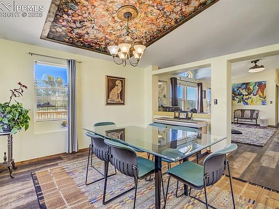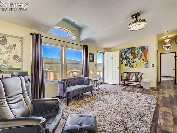 Tucked into the wild and wonderful Ranch Resorts community, this 3-bedroom, 2-bath ranch-style home on 2.29 acres is more than a home—it’s a mindset. Built in 1996, with updates since, this cozy 1,428 sq ft home packs a punch—featuring an owned solar energy system installed in 2014 (no lease, no payments, just long-term energy independence), a powerful forced-air furnace (2019), upgraded plumbing, and an ultra-efficient ComfortBilt pellet stove with an 80lb hopper, which could probably heat a cabin in Alaska. Reverse osmosis water filtration system? Check! Washer and dryer included? Of course! And here's the kicker—low maintenance, low bills, and zero HOA nonsense. Let’s talk vibe: Funky artist flair meets quiet country life. Beautiful dark wood-look luxury vinyl throughout to add luxury and cohesion. Neutral walls are accented with color along the trim and upper reaches, complemented by an optional original oil painting (see extras) that brings charm and warmth. The layout is practical, cozy, and spacious. Oversized deck with views and great space for entertaining! Ranch Resorts offers year-round road maintenance and the kind of elbow room neighbors in the city can’t even imagine. The circle drive means parking many vehicles is a breeze. No garage, but plenty of space to add one, or park all the gear, trailers, toys, and tools your Colorado lifestyle demands. Shed on site lets you store maintenance materials with ease. Well water, natural gas, septic, and plenty of stars at night. Welcome to freedom! Clean, solid, and well cared for—this home is perfect for those who value independence, simplicity, and living with intention. Ready to explore the lifestyle this home offers? Schedule your private tour today.