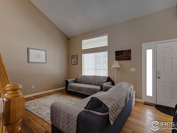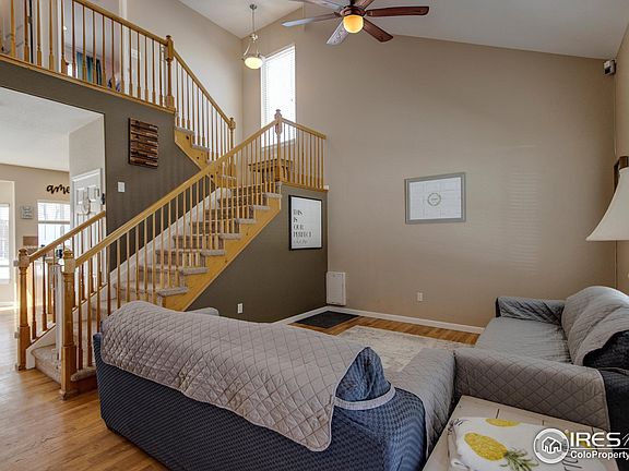 **No Metro Tax** Beautiful home on a large corner lot. Step into a nice family room with 18 foot ceilings. Nice flowing open concept floorplan. Eat-in kitchen opens to cozy Living Room with a fireplace framed by nice built-in shelving. An oversized custom stamped concrete patio is just a few steps away from the kitchen. The patio faces west and is shaded by several mature trees. Yard is fully fenced for the kids and pets as well as privacy. Raised garden is fenced off from pets. Large primary features vaulted ceilings, and a nicely updated en-suite bath with a water closet and walk-in closet. Secondary bedrooms have larger step-in closets. Large unfinished basement is a blank slate if you want to expand your living situation or use it for storage. Oversized garage offers plenty of parking and more storage space. It also has 220V service. Located in central Johnstown within walking distance to shopping, dining, the YMCA, and the Library. All are about a half mile from your front door. Easy access to I-25 or Highway 85 as well as Colorado Blvd and CR 17. Centerra and Scheels are a short drive. And lets not forget about Buc-cee's! Other quick notes: The Water heater is on-demand. The basement has a rough-in for a bath. The laundry room is upstairs and can be closed off.