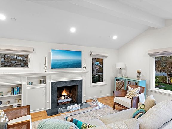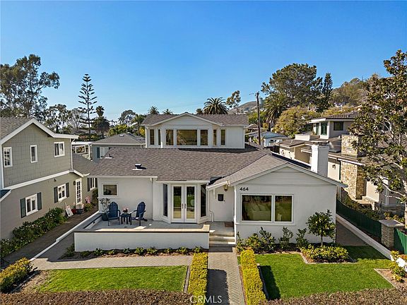 Charming ocean-view North Laguna cottage, nestled in the heart of town at 464 Linden Street, this beautifully reimagined 4-bedroom, 4-bathroom home offers 2,163 sq. ft. of luxurious living space on a 6,125 sq. ft. lot. Designed by James Ward Henry II, this home underwent a meticulous remodel and expansion completed in 2020, seamlessly blending timeless charm with modern elegance. Situated just a short distance to Main Beach, Heisler Park, Urth Caffé, and the vibrant village, this property delivers the perfect balance of privacy, convenience, and breathtaking ocean views from nearly every room. Step inside to discover a thoughtfully designed interior featuring vaulted ceilings, solid white oak flooring, and Pella Architect Series double-paned windows and French doors. The living and dining areas showcase a gas fireplace with original woodwork, a restored built-in shelving unit, and French doors opening to a front patio with ocean views. Smart home features such as KASA-controlled lighting, ADT security, and LED dimmable lighting enhance modern comfort. The chef’s kitchen boasts marble countertops, a Thermador professional range with a six-burner stove, a built-in paneled refrigerator, and a Thermador dishwasher. A butler’s pantry and walk-in pantry provide ample storage, with a wine fridge and a coffee bar for added convenience. From the kitchen sink, enjoy a direct view of the iconic Laguna Hotel, making every moment a scenic experience. The primary suite is a private retreat, offering breathtaking Catalina, ocean, and city light views, a private balcony, dual closets, and a spa-like bathroom. The ensuite bath features a walk-in shower with ocean views, a freestanding soaking tub, dual vanities, and a separate water closet, all finished with quartzite countertops and limestone flooring. Designed for seamless indoor-outdoor living, the spacious backyard features a fire table, Infratech electric heaters, built-in BBQ gas hookups, a TV hookup, and uplighting throughout. The Azek TimberTech back deck is low-maintenance, while the private outdoor shower is perfect after a day at the beach. A three-car garage with epoxy flooring, surfboard racks, and an EV charging outlet completes the home, along with an extra parking space. With every detail carefully considered, 464 Linden Street is the ultimate Laguna Beach retreat.