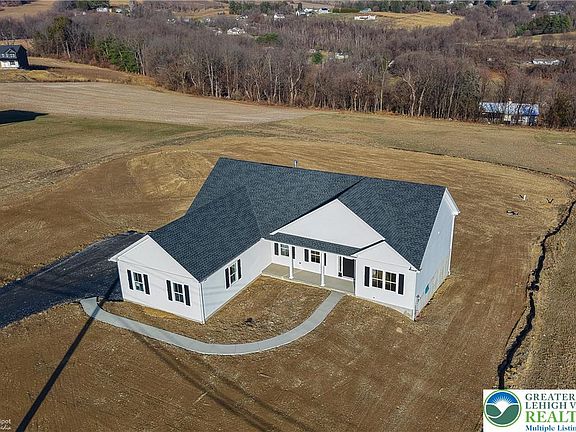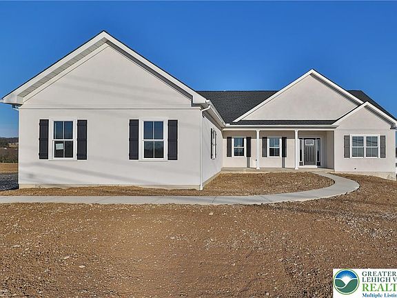 Ready to Go! Custom Ranch Home with Views! $5,000 Builder Lender Credit! Buy down your rate, reduction in price or closing cost credit! Premium Lot with Gorgeous views of the Lehigh Valley for Miles! Situated on an Acre of land within Vineyard Estates, Lehigh Township! This ranch floor plan boasts 9' first floor ceilings 3 bedrooms, 2 full baths! Custom finishes throughout! Large family room & dining room with hardwood floors & Modern Gas/Propane fireplace! Beautiful kitchen will feature 42" cabinets with raised panel, stainless appliances, Moen fixtures, Quartz Counters & hardwood floor! Breakfast nook provides unobstructed views of the mountains! First floor laundry and powder room! Master bedroom with walk in closet, ceiling fan & on suite full bath with tile shower & seamless glass shower door! Custom vanities with mirrors in all full baths! 30 Year Architectural roof! Poured concrete walk out basement! Recessed lights throughout, wire shelving in all closets, upgraded lumber, R21 Insulation, Attic Blown Insulation, Passive Radon Venting, 50 gal water heater, electric heat pump furnace/central air! On lot septic & well. Two Car Garage!