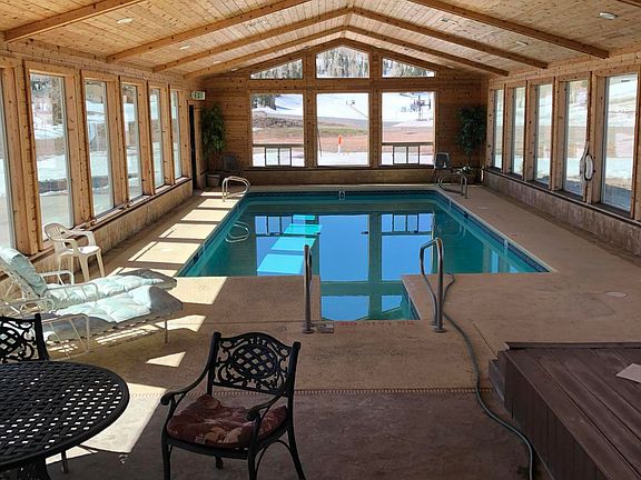 Fantastic get away home to ski in the Winter and hike or ATV in the Summer. Can be used as a nightly rental. Furniture included, gas fireplace, space heaters, dishwasher,range microwave, coffee maker, dishes, bedding included. Balcony, this unit faces forest (great view!). On site property management, clubhouse. Arcade, indoor pool & jacuzzi, sauna, steam room. Attached, covered, heated
