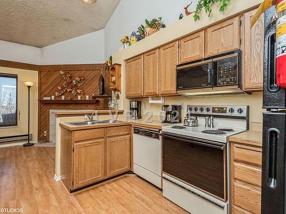 Located on the Giant Steps side of Brian Head, UT, this 621 sq. ft., open main floor with vaulted ceilings offers a lot of room and versatility in accommodating your next ski trip or summer get away! Unit features include: laminate flooring throughout main floor; open concept kitchen/dining/living room with wood burning stove; area for bunk beds near front door; solid wood cabinetry throughout;