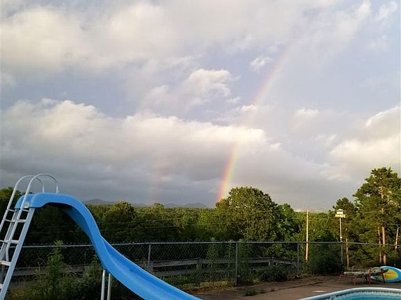Country living and room for horses! Hilltop setting with mountain views - 4 br, 2 1/2 baths, lots of room in this ranch style home with a new metal roof, CH/A and extra wood stove for heat. Walk in closet in MBR, antique stove in the kitchen plus appliances, lots of storage. Outdoor patio has plenty of room for entertaining around the inground pool, & a hot tub! Tack room, and horse feeding stalls included in the barn that has electricity. Nice pond near the house, lots of fencing for animals. Must see!
