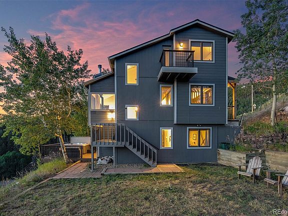 Welcome to this stunning Evergreen property, just minutes off of I-70 on Floyd Hill. This mountain retreat offers the perfect blend of convenience and natural beauty, with an easy commute to Denver in under 30 minutes or a short drive west to nearby ski resorts. Enjoy living in a wonderful mountain setting with breathtaking views and full sun all year round. The property features all paved roads leading up to the driveway, ensuring easy access. Upon arrival, you'll be greeted by a stunning timber frame entry that opens up to views in every direction. Step out onto any of the four decks to soak in the great outdoors and watch for grazing deer and elk. Recent updates include a newer roof installed in 2020, paid off solar panels installed in 2022, newly installed thermostats, new fireplace installed in 2022, new hot tub installed in 2022, new water pressure tank installed in 2024, renovated bathrooms, a redesigned luxury kitchen with newer cabinets, backsplash, stainless steel appliances, and quartzite countertops. The primary suite is a true sanctuary, featuring a primary ensuite with a stand-alone Delta bathtub and an oversized shower. The lower level boasts a spacious family/recreational room, 2 additional bedrooms and a spacious bathroom. Don't miss out on this spectacular property!