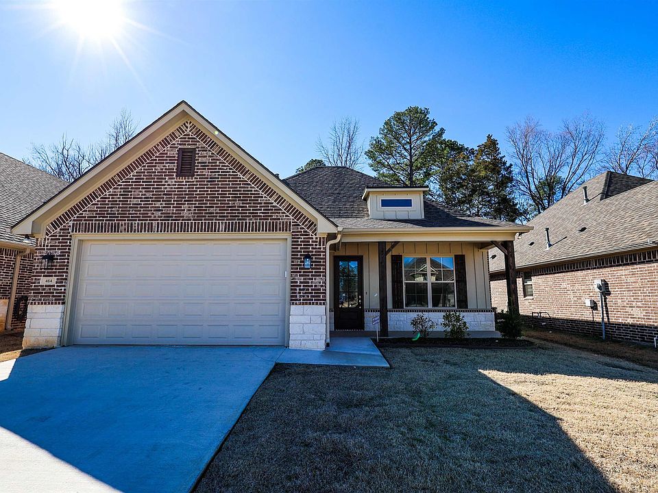 Welcome to Preston Ridge, a gated 55+ Community in South Tyler! Brand New Construction. This home features a three-bedroom, two-bath open-concept arrangement, as well as a two-car garage. Lawn care is included at Preston Ridge! The living, dining, and kitchen areas boast vaulted ceilings with oversized windows, allowing natural light to fill the space. The kitchen has custom-designed cabinetry, granite countertops, and stainless steel appliances. The neighborhood will feature a clubhouse as an added space for entertaining, that will also include a mail room.