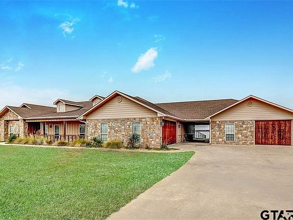 Why not have it all? Wide open water on Lake Fork situated on almost 5 acres. Thoughtfully designed with clean lined & open gather spaces. Massive rooms made for entertaining, gourmet kitchen, enormous pantry, mudroom, sink in utility, Double see-through fireplace. Master features fireplace, incredible em suite with soaking tub, glass enclosed shower and huge walk-in closets. Private split floor plan, 4 BDR & 3 BTH. Endless screen porches overlooking he lake, breezeway, sprinter system, back-up generator & safe room. 1300 SQFT of drive through garage with HVAC & half bath (easy conversion for in-law suite), automatic entry gate, boat launch, double covered boat house with fish lighting system on BIG water.