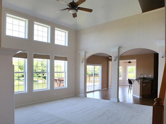 Large 5 bd, 4 bth home with spectacular lakefront location! Swim, fish, sail or use your trolling motor boat from your backyard! Enjoy unobstructed sunsets all year long reflecting over the 120 ft lakeshore from the huge deck and patio! Main floor Master Bedroom! 3 more bedrooms upstairs and one on walkout level. Main floor has office, formal DR, kitchen and sunroom. Walkout lower level has rec room, bonus room, surround sound and huge unfinished area for storage, kids play or theatre room!