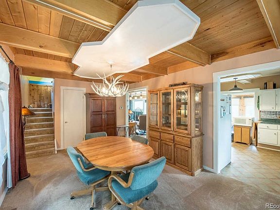 Quaint mountain home with stunning views of Mount Thorodin! Home is nestled into a large, flat wooded lot with plenty of outdoor living space and a deck to enjoy the serenity of your surroundings. Inside, enjoy the thoughtful details throughout. The wood-paneled ceilings and exposed beams are complemented with detailed accents and unique light fixtures. Enjoy the cozy wood-burning fireplace, sunroom, a main floor bedroom and bathroom, and a separate dining room. Close to outdoor recreation, and casinos. Only 10 miles to Central City, 30 miles to Boulder, and 40 miles to Denver! Don't forget space for extra parking and an oversized 2 car garage.