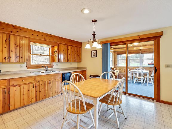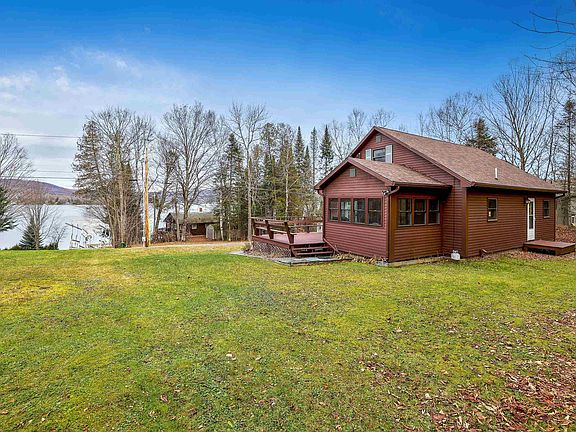 Looking for a four season home in Vermont on a clean, clear lake. At Lake Seymour in Morgan, Vt. sits this 3 bedroom cape with its own shared sandy private beach steps away and a boat dock. The home is furnished and has been meticulously cared for with updated systems, new roof, some new windows, hardwood flooring and fresh paint. You will love the open living concept of kitchen, dining and living area plus there is a bedroom and bath with laundry space on the main level. Off the kitchen there is a lovely sunroom for extra three season living space. The second level has 2 bedrooms. The landscaped grounds include a large deck for entertaining. The full basement boasts a one car garage and plenty of storage for your boat, snow machines, and outdoor gear. Folks on Seymour brag about great fishing in all seasons. FYI there is high speed internet here! You will often hear loons on this lake and enjoy watching their antics. Let us welcome you to the peace and serenity of Vermont's Northeast Kingdom.