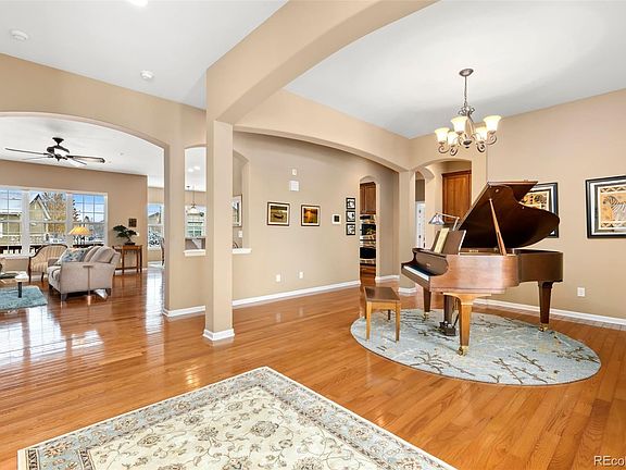 This gracious ranch style home is situated in the heart of Anthem Ranch, an active living community in Broomfield, CO. The property is set on a greenbelt with a trail that runs behind it that leads to the center of the community - Aspen Lodge. The home offers ample space for all your treasures as there are 3 substantial bedrooms, including a master suite with en suite bath and well-organized walk in closet. There are three distinct spaces for office or hobby rooms and open concept living areas that will easily accommodate your guests and provide you enough room to create those special spaces. The home has a large covered back deck that is elevated to allow for a walk out, light-filled basement as well. So much to see here and lots to explore, so without further adieu, please call to set up your private showing and see just what Anthem Ranch has to offer. You'll want to come for the views, but you will stay for the lifestyle.