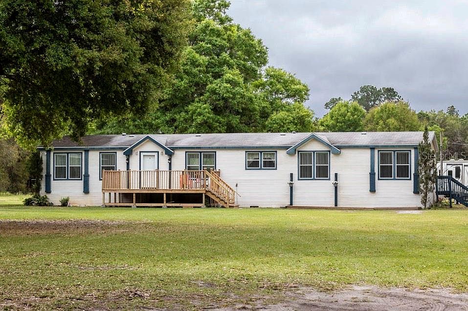 Come enjoy this peaceful country setting on almost 4 acres located in the heart of Lakeland, just minutes from I-4 and shopping. This beautifully maintained Palm Harbor Manufactured home sits back off of the road with large mature oaks, a pond and a charming wooden front porch. The kitchen is designed perfectly with an abundance of cabinets for ample storage and an island in the center for more cooking space. The master has a large bathroom with dual vanities, a garden tub, stall shower and a walk in closet. More than enough room to bring all of your animals, toys, RV's and to add a workshop/barn. The property offers a 50 AMP hookup and a softener system. The home has been recently releveled with the perimeter piers reset as well. The home is maintained with monthly pest control. Available financing CONVENTIONAL, FHA, VA OR CASH!