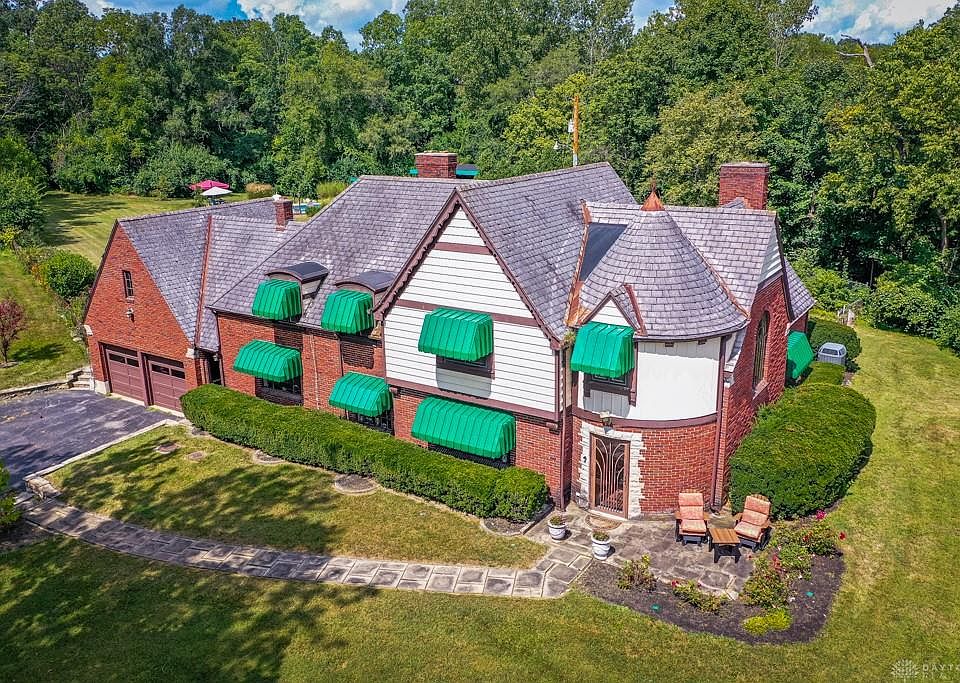 This unique property has about everything you could possibly want. It's a beautiful English Tutor with an amazing outdoor living space that includes an updated heated pool, a huge trex deck, pool house w/ full bath & covered wet bar sitting on 9 acres. W/ no close neighbors, just imagine the cool, outdoor parties you could have. Located near I-70, 75, 675, Miller Lane & the airport easy access to everything. Let's talk about the lovingly cared for home. A huge living room is accented by built-ins, fireplace & arched doorways. The dining room has beautiful walnut floors & corner cabinets. The vintage kitchen has terrazzo floors & an island. This level also has a bath, a huge laundry/mudroom & an enclosed porch with scenic views of the outdoors. Upstairs boasts 3 spacious bedrooms & a bath. In addition to the attached 2 car garage, the fenced property also includes a 10x40 storage unit that's divided into 4 - 10x10 units for vehicle/storage rentals. See the 3-D imaging. Call now to tour!