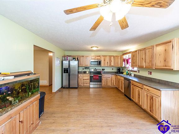 Spacious ranch style home in Meade county school district with 3 bedrooms & 2 possible bedrooms in the partially finished basement, 2 full baths, fenced yard, mud room, attached 2 car garage, covered front porch, and a large 1.46 acre lot. You will love the counter space and amount of cabinets in this kitchen that were replaced in 2018. The stainless steel kitchen appliances stay with the home. The sellers are offering a $1500 flooring allowance.