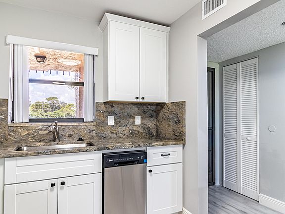 Find more to love in this fully renovated condominium located in desirable Sunrise of Palm Beach. Here you'll find updates and upgrades including new AC, water heater, electric panel, plumbing and plank flooring plus bathroom updates incl vanity with granite surface, large frameless shower. Charming kitchen with oversized passthrough incl soft-close Shaker cabinetry and granite countertops. Bedroom features walk-in closet with wooden wardrobe organizer. Screened balcony with golf course view offers plenty of space for al fresco seating, dining, and entertaining. Convenient storage closet and laundry room. Sunrise of Palm Beach is an active adult community featuring a clubhouse with fitness studio, golf course, pool, and tennis courts near area dining, shopping, and recreation.