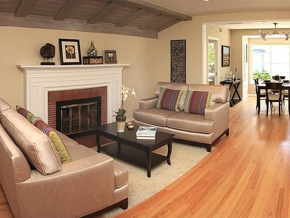 Stylish immaculate traditional with great entertainers floor plan in sought after neighborhood. 3br+2 ba -spacious 1877 sf(per assessor)-Formal entry to spacious living room with lovely fireplace and charming bay windows. Formal dining room adjacent to updated cooks kitchen with separate laundry room. Kitchen opens to large family room with second fireplace. Walls of French doors lead to very private covered patio, grassy lawns and tree shaded gardens. Master suite plus two additional bedrooms. Hardwood floors and natural wood accents throughout. Spectacular professional landscaping completes this wonderful property.....this one is a cream puff! Standard sale.