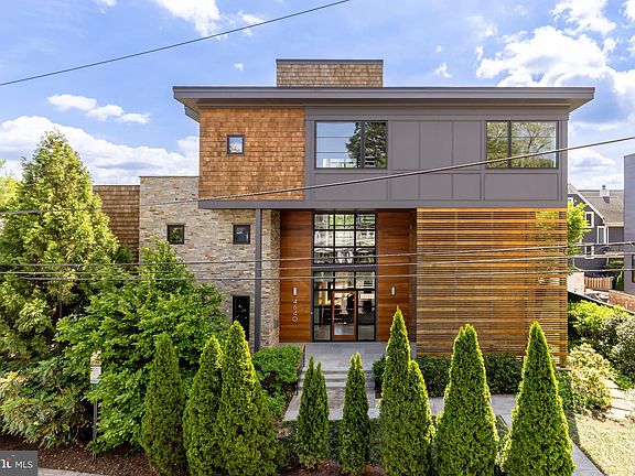 Custom Built Home in the Palisades with River Views | Elevator | Rill Architects | 5 Beds | 4.5 Baths | 4505 Sq Ft | Private Roof Deck | Landscaped Yard | Garage + Driveway Parking. Situated on a quiet street in the Palisades, this custom-built home offers extraordinarily easy city living with bonus river views. Designed by Rill Architects and constructed with the highest quality materials and finishes, this is an incredible opportunity to become only the second owner of a truly special property. The home opens with a spacious entry foyer offering immediate views of the outdoors through one of the many large-scale windows found throughout. There is ample wall space for displaying art, along with immediate access to the elevator (servicing all levels) and a dramatic, light-filled stairwell. This level includes three bedrooms and two full baths, all offering a distinct sense of privacy and access to outdoor spaces, including a large deck and the garden. The next level features a beautiful and tranquil primary suite, complete with a double-vanity bath, a large steam shower, and a generous walk-in closet. This suite is a true retreat, situated in its own wing of the home. Just down the hall, you'll find a laundry room, another bedroom and full bath with a tub/shower combination, and built-in cabinets for linen storage. Arriving at the kitchen level, you're greeted by more expansive windows offering treetop and river views. The chef’s kitchen includes island seating, a six-burner cooktop, a Sub-Zero refrigerator, wood cabinetry, and striking countertops. The dining and living spaces are expansive and open to the kitchen, offering effortless flow for everyday living or entertaining. The breakfast room overlooks another outdoor space—perfect for stepping outside with a glass of wine or enjoying a quiet moment in nature. A large pantry and a powder room complete this level. Not to be missed is the roof deck, offering some of the best views of the Potomac and surrounding treetops that one can enjoy from the comfort of home—ideal for both relaxed lounging and large-scale entertaining. The two-car garage is located on the lowest level of the home, with a driveway that accommodates multiple vehicles. Access all levels easily via stairs or the elevator. Just a short drive to Georgetown or the neighborhood shops and restaurants in the Palisades, with quick access to Virginia and downtown, this location offers the best of easy, contemporary city living.