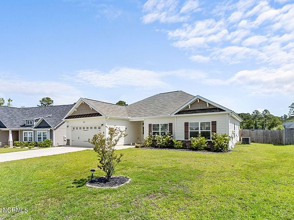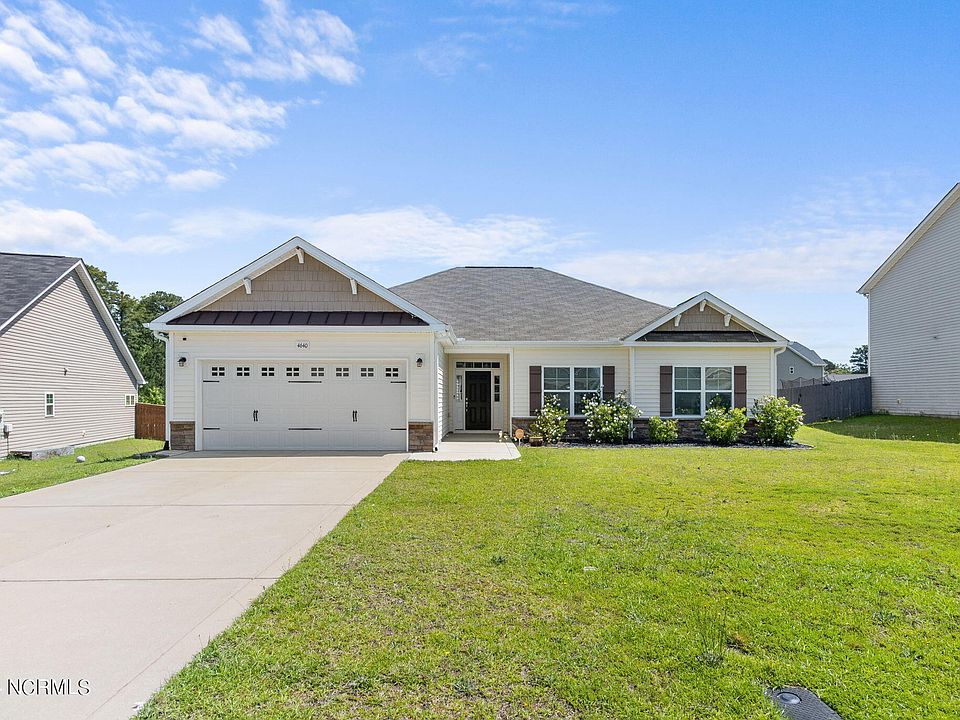 Discover this exquisite ranch-style home nestled in the coveted Jack Britt School District. This gem boasts Energy Plus certification, ensuring both sustainability and comfort. Enter inside to find a unique open floor plan accentuated by cathedral ceilings in the great room, offering an inviting ambiance perfect for entertaining or relaxation. The heart of the home, a dream kitchen awaits, complete with an expansive island, granite countertops, and a breakfast bar, ideal for culinary delights and social gatherings. Updated lighting adds a touch of modern elegance throughout, while the pre-wired surround sound in the great room sets the stage for immersive entertainment experiences. Retreat to the primary bedroom featuring trey ceilings, an ensuite with a separate shower, garden tub, double vanity, and a walk-in closet for ultimate convenience. Plus, enjoy the peace of mind with tubes in the wall system maintained by Home Team Pest Defense. Experience this stunning abode.
