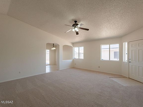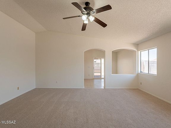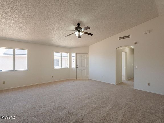 New carpet! New paint! Live near the neighborhood park! 4 bedroom/2 bath move-in ready home has a split bedroom plan with open concept floorplan and high ceilings throughout. There is a covered patio and block walled yard with a peak of the Catalina Mountains. The roof is approximately four years old, the HVAC is approximately six years old. The kitchen has a gas stove, microwave, garbage disposal, dishwasher, and refrigerator. Walk through the home with a Zillow 3D tour.