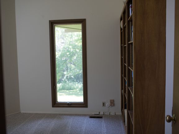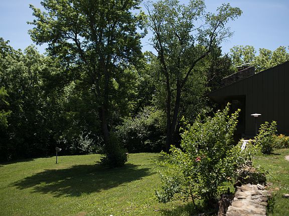 Mid-century contemporary design surrounded by nature yet close to city of Topeka. The minute you turn onto the lane, tall trees quiet traffic noises and create a refuge for you and the wildlife. The home's dramatic entrance has a high vaulted ceiling, chandeliers, recessed lighting, gorgeous rock fireplace, huge windows, Saltillo tile and a wooden feature wall. The family room features a wall of solid wood built in bookshelves, closets, a vaulted ceiling and a dramatic rock fireplace. The cabinet rich kitchen includes a dinette area surrounded by windows, the perfect place for watching wildlife. The walkout basement is finished with two bedrooms, bath, a second kitchen, and living room. It could be used as an income apartment or for your teenagers.