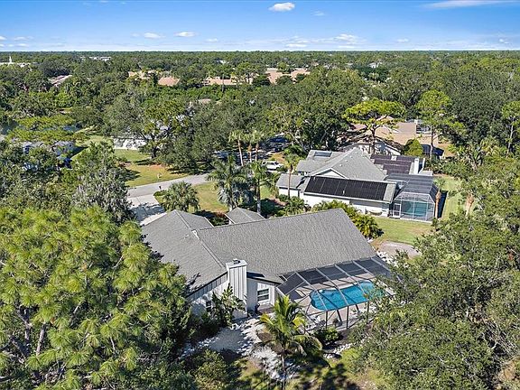 Welcome to your Sarasota Sanctuary! Fully remodeled, custom-built home in the heart of Longwood Run, just minutes from UTC, beaches and the airport. This spacious, 3 bed plus den, 2 bath home sits on over half an acre. The open, split floor plan has a modern and crisp feel with numerous upgrades throughout. Streamlined, custom kitchen is fresh and modern with white oak cabinetry, quartz countertops, neutral backsplash and Bosch appliances. The adjacent, vaulted great room is open to the kitchen and features a wood-burning fireplace with stone surround, as well as tasteful, LVP flooring throughout the entire home. Enjoy total privacy right in-town with mature trees and lush landscaping backing up to thick woods with no one behind you! Here you will find an outdoor oasis with south-facing pool, and large firepit area with plenty of room for sports, gardening, or future landscaping projects. The massive lanai area with travertine pavers boasts over 500 square feet of covered living space making it perfect for entertaining and simply enjoying nature under a rich, mahogany shiplap ceiling. Over 1,200 square feet of enclosed lanai space with plenty of room for lounging and additional dining area. This spectacular view can be enjoyed from several different areas of the home with impact sliders off the primary bedroom, formal living, and kitchen/great room area. There is nothing left to do here but call this home your own! Brand-new, Pex plumbing throughout (2025) with transferrable lifetime warranty, impact windows/sliders throughout with transferrable lifetime warranty (2025), modern Board and Batten James Hardie siding with fresh paint (2025) with transferrable lifetime warranty, newer lanai enclosure (2018), refinished pool surface (2018), well for irrigation (2019), roof (2017), hot water heater (2023), HVAC (2018/2019). This property is not your typical, cookie-cutter, production home. The design enthusiast will appreciate all the tasteful, high-end updates throughout as well as a fantastic floor plan that's not easily found in an established neighborhood in this area. Schedule your private showing today!