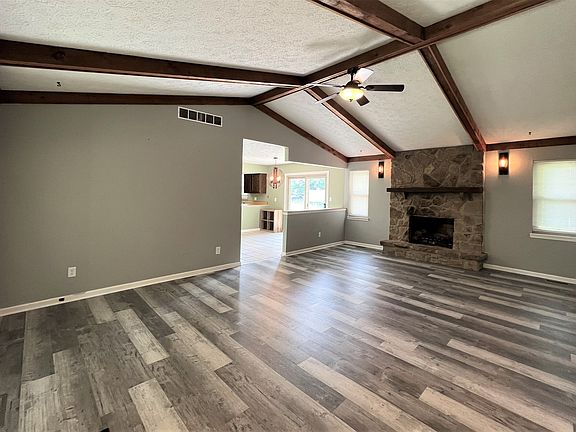 Well Maintained 3 BDRM Home on a spacious 1/2 Acre + Lot w/some updates! Family Room has a wide open feel w/cathedral ceilings & rustic wood beams! Beautiful stone fireplace & updated lighting center off the room! 3 Spacious BDRMS w/updated lighting, new carpet & fresh paint. Primary BDRM is currently 1/2 Bath, but has shower space just waiting for completion to the buyers personal style! Full Bath has been recently updated w/new surround & has double sinks. Dining Room offers beautiful views of the large fully fenced backyard on over a 1/2 acre! Kitchen has new sink & faucet, large pantry & breakfast bar! Backyard patio is perfect for BBQing or entertaining! Storage Shed & Firepit in the backyard. Oversized 2 car garage w/work bench!