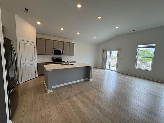The heart of the home is the expansive kitchen, dining, and living area ideal for entertaining. The kitchen includes an island with bar seating, a walk-in pantry, and plenty of cabinet space. The primary suite offers a spacious walk-in closet and private bath with dual vanities and a large shower.