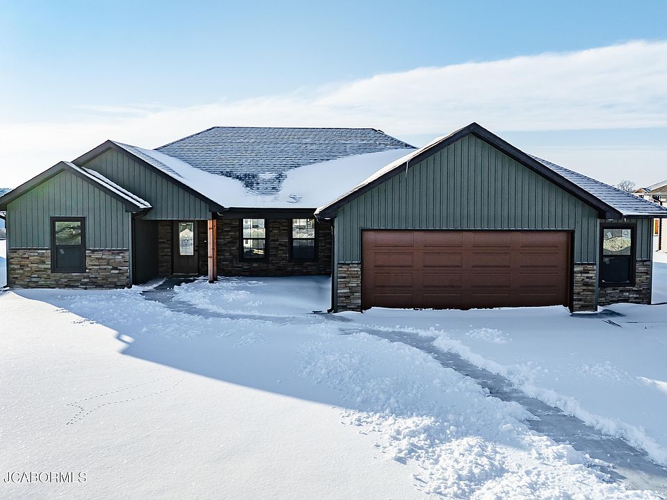 The Liberty Landing North subdivision is now home to a charming newly completed residence, boasting an exterior color scheme that masterfully balances modernity with warmth, leading to a bright and airy interior. This family-friendly 3-bedroom home features a spacious living area, expansive primary suite, and an extra garage area allocated for storage, addressing the needs of growing families.