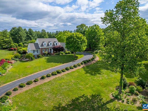 Idyllic location in sought after KESWICK FARMS, just one mile east of Glenmore on RT 250 in Albemarle County. A bucolic neighborhood & home to only 16 residences. Set upon 3.54 lush acres with alluring grounds that have seasonal master gardens on display. Notable outdoor features include a Travertine patio & Pergola, plentiful open grassy area, a new 35' x 26' detached garage with 3rd/4th bays and expansive board fencing. Built by Braxton Design Group, this recently renovated residence is simply gorgeous. New kitchen and Master bath with heated flooring and a walkout Terrace level that has a wonderful in-law/nanny suite with a kitchenette and private patio. Interior of home is sun kissed with natural light and enjoys glorious sunsets to the west. Distant views of Monticello Mountain. VERY private and serene location.