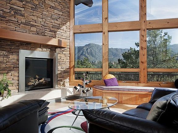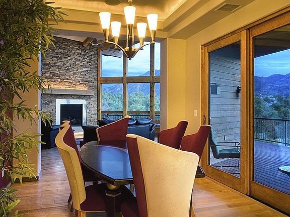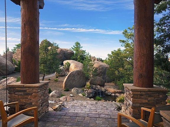 A tranquil 90-foot water feature flowing from the boulders welcomes you to this approximately 5858 square foot home set on 3.1 acres in the gated equestrian community of American Ranch. This one-of-a-kind custom Lodge-style estate is impressive with its modern interior touches and unobstructed panoramic views of the Prescott National Forest and Granite Mountain. Enjoy seemingly endless outdoor living spaces including a hidden patio with its own gas fireplace and a wraparound deck featuring another outdoor fireplace along with a built-in barbeque.