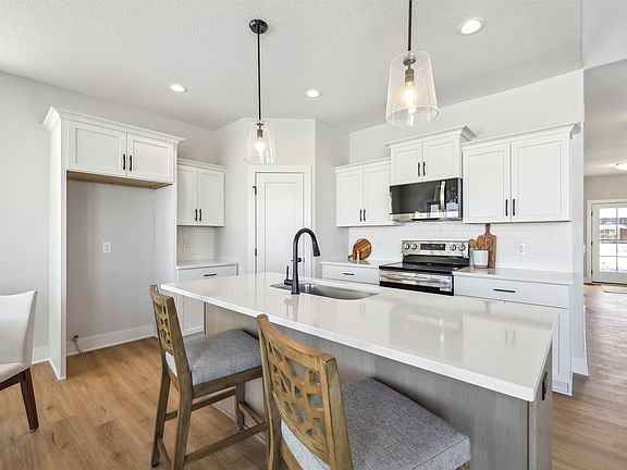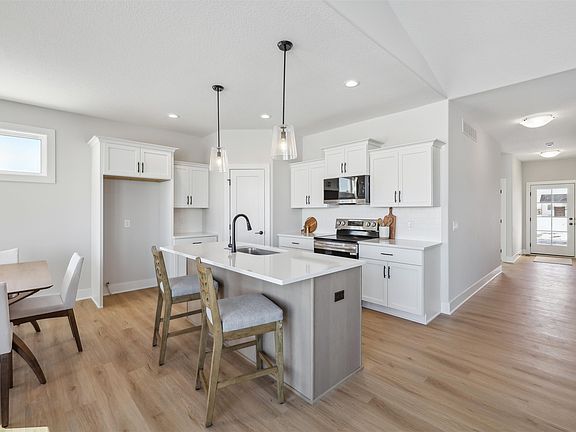 Welcome to the Amber Plan by KRM Custom Homes—located in the sought-after Biltmore West neighborhood and designed with modern living in mind. With 3 bedrooms on the main floor and tons of natural light, this home brings style, space, and functionality together effortlessly. The great room is warm and inviting, featuring an electric fireplace and large windows. The kitchen=goals. You’ll love the quartz countertops, soft-close cabinetry, a spacious island for entertaining, and a walk-in pantry that’s ready for all your kitchen must-haves. Appliances like the stove, microwave, and dishwasher are already in place. The primary suite gives you that perfect retreat vibe with a tiled walk-in shower, frameless glass door, and a walk-in closet that flows directly into the laundry room. A built-in drop zone helps keep everything organized for those out-the-door mornings. On the opposite side, the guest wing includes two additional bedrooms and a full bath—great for guest! Details like rounded drywall corners, vaulted ceilings, and a sleek, clean finish throughout add a subtle touch of luxury without being over the top. This home includes exclusive high-performance builder features like BIBS insulation, Advantek subflooring, Zip system, Form-a-Drain, and passive radon mitigation for peace of mind. Need more space down the road? The unfinished lower level offers tons of potential to grow with your lifestyle. Modern, efficient, and built to last—this home is the total package.