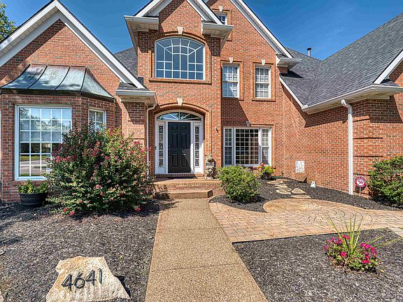 Welcome to 4641 Bridgestone Boulevard located in the highly desirable Thornbrook Estates. This five bedroom, three and one half bath brick home is situated on a large corner lot. This brick home has an awesome curb appeal and is well maintained. The grand 2-story foyer is flooded, with natural light. Just off the foyer is a formal dining area (used as a sitting room currently), and office that boasts a large bay window. The great room offers a new high efficiency fireplace, insert with blower and remote and is flanked by built-in bookcases, and access to the deck overlooking the heated in ground pool. The soaring vaulted ceiling adds to the openness of this great living space. The owners suite has a great view of the backyard and features a full en suite with a corner jetted garden tub, his and her vanities, step in shower, water closet, and L shaped walk-in closet. The updated kitchen features an abundance of cherry cabinets, large island, granite countertops, and is fully equipped including a wall oven and microwave, and a newer gas top with grill. Kitchen has new countertops, tile, gas line and gas stove. Just off the kitchen is a cozy family room with three large windows and additional access to the back deck. Completing the main level is the laundry room, a conveniently located half bath, and access to the attached, side load garage. Dual staircases lead to the second floor. The 34x4 landing takes you to an additional four bedrooms. Two bedrooms share a Jack and Jill bath with dual vanities and a second Jack and Jill bath is shared between the fourth and fifth bedroom/bonus room. Saving the best for last is the stunning backyard. This privacy fenced oasis is perfect for entertaining and enjoying the remaining warm evenings and early fall nights by the in-ground heated pool. This area features an open deck and landscaped patio area surrounding the pool. Do not miss this rare opportunity. Lot of updates and this home is ready to move right in. New carpet throughout, new paint throughout, new pool heater, new blinds, new toilet in primary bath, new hot water tank, new electric outlets and switches throughout, new sconce lighting up back stairwell, primary bath, front living area. See attached list for all updates!! All appliances convey including washer and dryer, less than one year old.