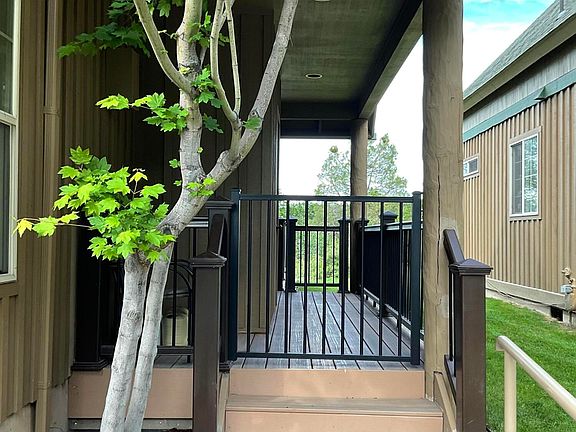 Beautiful views of the mountains, lake and the wooded common area from the large deck of this chalet. This home has been beautifully upgraded and maintained as a second home. Upgrades include laminate wood flooring throughout, quartz countertops, new appliances, new composite deck and handrails with retractable (by remote) awning, central vac, all natural pest control barrier. Fully furnished and walk-in ready – including TV, sound system and linens.... You really must see this Chalet to appreciate it's charm and beauty.