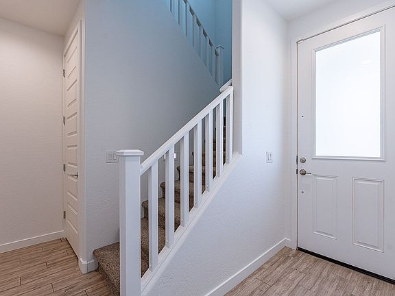 This lovely 2-story home features 3 bedrooms and 2 bathrooms, spanning 1,312 square feet of living space. Step into the elegant living room, perfect for unwinding, with access to a balcony for relaxation. The dining area seamlessly blends with the well-equipped open kitchen, boasting granite countertops, white cabinetry, and stainless steel appliances including a dishwasher, microwave, refrigerator, and electric range oven. The primary bedroom offers a spacious walk-in closet and a comfortable bathroom. Located in the highly desired Eastmark master-planned community known for its innovative amenities and active lifestyle.