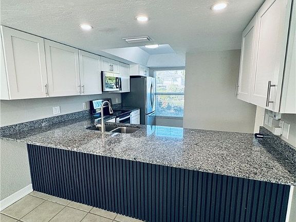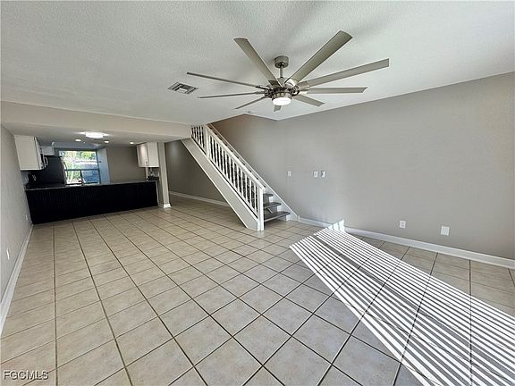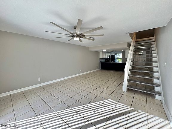 This updated 2-bedroom, 2.5-bathroom townhome offers 1144 square feet of comfortable living space in the Cape Gardens community. The bright open floor plan features tile flooring throughout the main level, a large living and dining area, and sliding glass doors that lead to a private fenced patio perfect for relaxing or entertaining. The modern kitchen includes white cabinetry, granite countertops, stainless steel appliances, and a breakfast bar with ample space for seating.