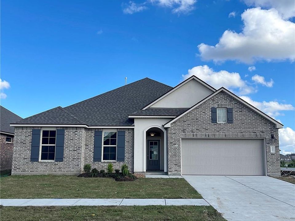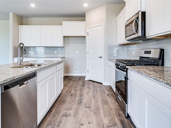 'Jameson EB' The Jameson plan is a spacious 4 bed 2 bath home with a large main suite. The open concept kitchen, living dining areas are also specious and overlook a long covered corner patio. The kitchen is designed with sleek cabinets, granite countertops and a subway tile backsplash and is equipped with stainless steel appliances that include a gas stove, dishwasher, and micro hood. This home is settled in Ridge at Morganfield, a new construction community with a Homeowners Association. This home comes with a 10-year warranty. All homes offer smart home automation, wood laminate flooring, fully sodded yards, and electric garages with garage door openers.