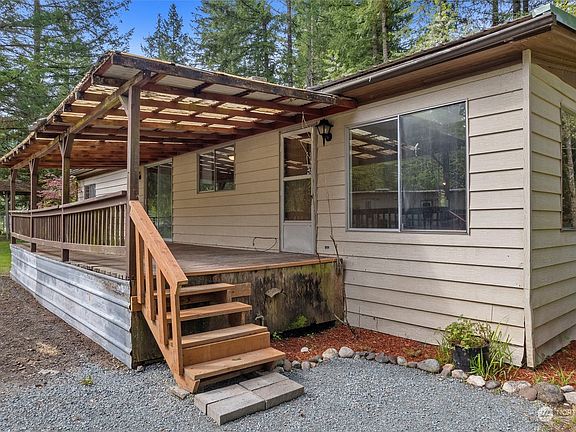 Affordable housing nestled in the foothills of the North Cascades. 2bed, 2bath, 1,296 Sq. Ft. Large Primary Suite with 5-piece en-suite and walk-in closet. Recently updated carpet, flooring, metal roof and plumbing. Enjoy the .47 acres with gated entry and fenced yard. Cedar Grove is a friendly community with hiking trails, river access, and a private park.