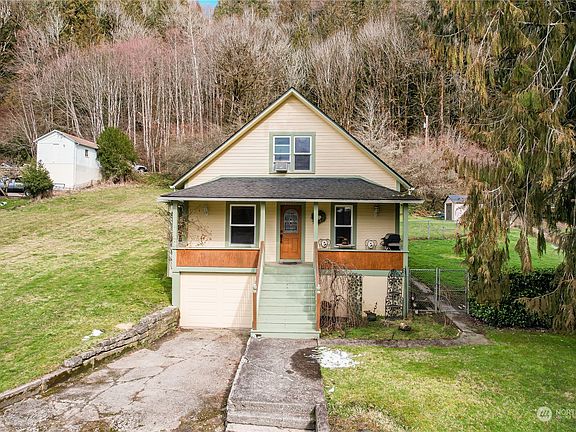 Before you enter, stop & turn around.Imagine having your morning coffee or your evening wine looking out at the mountains with an unblocked view.When you open the front door you will be looking across the living & dinning area with tall ceiling, bay window & hardwood floors.It’s a wonderful place to gather or host a party. You are bound to get a lot of compliments on the CHARM of your home.To the right of the door is the office/bedroom.Walking thru the dinning room, the kitchen is to the right.Lots of cupboards & newer SS appliances.The bath/laundry is at the back of the home.Upstairs are 2 bedrooms.Your in & it’s time to enjoy a stroll thru the quaint town of Concrete.Hike along the Skagit or Baker rivers. WELCOME HOME