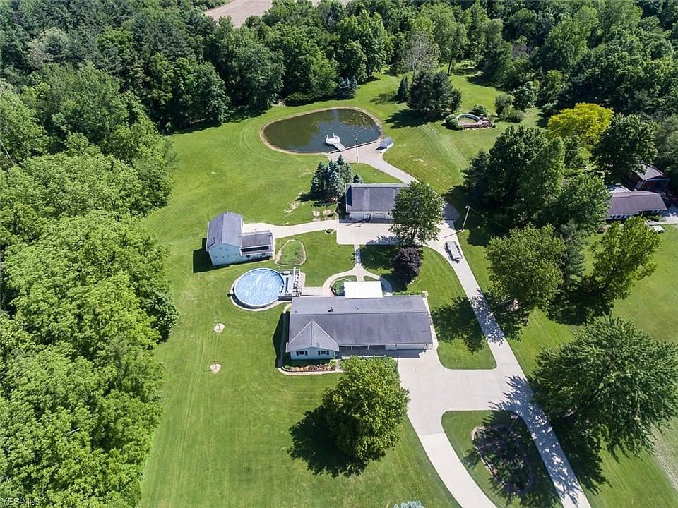 Here is your chance to own over 9 gorgeous acres with 2 great out buildings, a pool, a pond & tons of parking! As you step into the home you will notice the hardwood floors throughout. Beautiful built in entertainment center and bay window in the living room. Lots of storage in the kitchen with cabinets that go all the way to the ceiling. 3 spacious bedrooms with ample closets. Large owner's suite with bath. One of the bedrooms is an office with built in desk and cabinets (that can stay). Lower level has rec room with wet bar, 2 additional bedrooms and has glass block windows. You will love the views from the newer 4-season patio enclosure that is heated and cooled. Host summer parties with the above ground pool and deck with awning. The exterior of the home is a vinyl coated steel seamless siding. The barn has electric and has the wood burner that heats the house along with the propane fueled radiant heat. It also houses the pool equipment. Tons of storage in the barn for all of your equipment or animals. The shop is an exceptional space and is heated with a full bath! The generator provides back up power to the house and shop. The pond is stocked and is 17 feet deep in the middle. Follow the bridge over the creek and you will find a tree stand & picnic area. The property goes back into the field that is farmed by a local farmer. This is a unique property with lots to offer! Call today for a private showing.