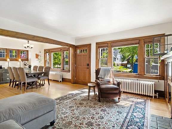 Welcome Home to this beautiful Craftsman Bungalow with so much character & charm. The original hardwood floors & trim carry through the main level in this 1920s home & the large windows allow light to flow throughout the space. Cozy up to the wood burning FP in the LR flanked by original built-ins that add extra storage. A large formal dining room is perfect for entertaining family & friends. The kitchen w/double windows, oak cabinets & gas stove. Two main floor bedrooms & a full bath. Head upstairs to your office or flex space, the primary w/great light & built-ins, & the 4th bedroom. Downstairs is the dedicated laundry, storage space & tons of potential to add extra finished SF. Head out the side door to the immaculately landscaped fully fenced yard w/paver patio (2021), raised flower bed, steps to a lounge space w/ awning & 2 car detached garage. Blocks from Lake Nokomis, Lake Hiawatha, the Minnehaha trails, tons of shopping and restaurants. Quick access to downtown & the airport.