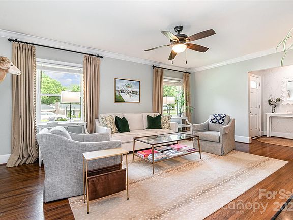 Welcome home! Located in the desirable Sherwood Forest neighborhood, this charming 3-bed 2-bath ranch offers a cozy escape to call home. From the moment you arrive, you’ll be greeted by beautiful curb appeal and a spacious yard, landscape lighting included. Inside, gleaming original hardwood floors lead you through an inviting layout that includes a modern kitchen with ample counter space and new built-ins for extra storage that add a touch of sophistication coupled with functionality. Enjoy a comfortable living room with a fireplace and a dining room perfect for entertaining. The primary bathroom features a modern walk-in shower, and an updated back deck and fully fenced in backyard allows for intimate get-togethers and weekend barbecues. Major updates include a new roof and new HVAC, both installed in 2022, giving you peace of mind and comfort year-round. This rare find is not one to miss as it is a stone's throw away from Cotswold Shopping Center and all you need in Charlotte! Come see why 4642 Addison Drive is the perfect place to call home: style, comfort, and convenience all in one.