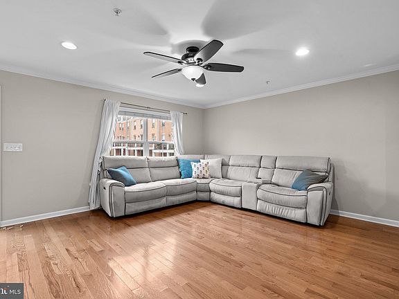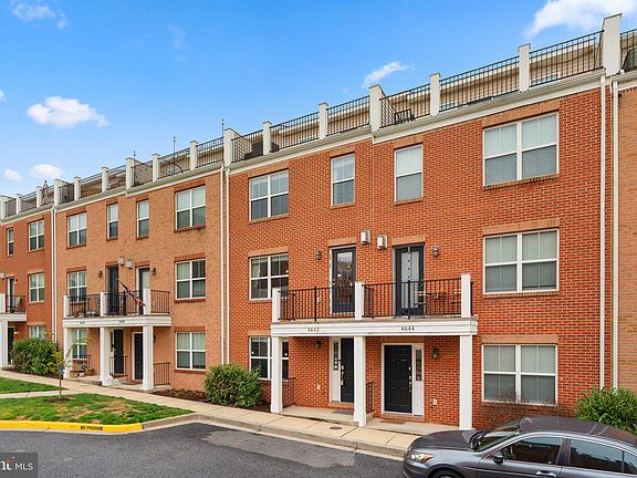 A covered front porch ushers you into this stunning brick front townhome featuring a foyer entry, a bedroom suite or workplace on this level, and stairs to the core level of this home with beautiful hardwoods and refined crown moldings. This floor offers an open concept including a living room with an ambient fireplace and walkout to a private balcony, a dining room with an office alcove, and an upscale kitchen. Forming today's social hub, the center chef's kitchen boasts 42" espresso cabinetry, granite counters, tile backsplash, a center island with a breakfast bar accented by pendant lighting, and stainless steel appliances including a gas range. A level up you find two bedrooms, a secondary and an owner's suite presenting a breezy lighted ceiling fan, a walk-in closet, and a private bath with a double bowl vanity and frameless shower. On the fourth level you can enjoy the open loft with a glass slider opening to the rooftop terrace providing a superb outdoor entertaining space with panoramic views of the city including the Natty Boh Tower.